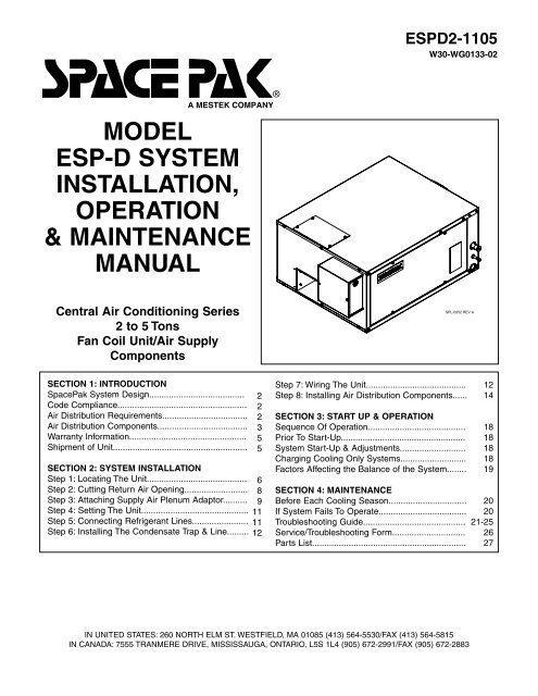 Model Esp D System Installation Operation Ac Direct